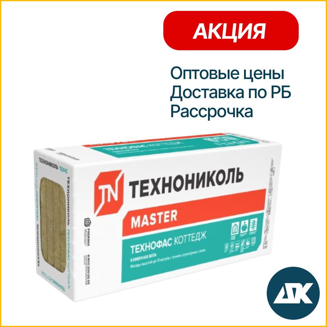 ТЕХНОФАС КОТТЕДЖ 100 мм Минеральная вата (Каменная вата, базальтовая вата, утеплитель для стен)
